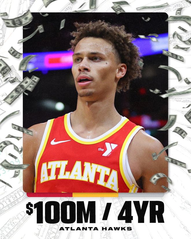 北京时间10月21日,据Shams报道,亚特兰大老鹰队的最佳防守球员戴森丹尼尔斯已经同意与球队签订一份为期四年、价值1亿美元的新秀续约合同。老鹰队预计与丹尼尔斯签下一份为期五年、平均年薪近2300万美元的合同。最终,丹尼尔斯选择将合同缩短一年,以换取略高的平均年薪。老鹰队一直打算长期续约丹尼尔斯。据联盟消息人士透露,球队已经向丹尼尔斯明确表示,即使双方此时未能协商续约,也不意味着双方关系的结束。事实上,差距远非如此。如果这位 22 岁的球员在 2026 年成为受限制自由球员,球队计划匹配他收到的任何报价,即使它超过了老鹰队在前几个月提出的数字。现在双方都有保障了。丹尼尔斯被评为NBA上赛季进步最快的球员在年度最佳防守球员投票中排名第二,还入选了最佳防守阵容第一阵容。他单赛季抢断229次,这是自1995-96赛季加里·佩顿以来单赛季抢断最多的球员。 2024年7月,老鹰队在交易中从新奥尔良鹈鹕队获得了丹尼尔斯和一个首轮选秀权,其中送出了德章泰·穆雷。到目前为止,防守出色的丹尼尔斯和明星控卫特雷杨的搭档在亚特兰大卓有成效。丹尼尔斯成为老鹰队的中流砥柱之一。除了他之外,球队侧翼还有杰伦·约翰逊和2024年选秀状元丽莎·谢,两位建队关键球员。