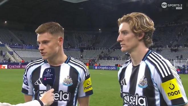 欧冠第三轮,纽卡斯尔联主场3-0击败本菲卡。赛后,进球球员安东尼·戈登和哈维·巴恩斯在场边接受了TNT体育的采访。哈维·巴恩斯说:“这对我们上赛季没有在欧洲比赛的球员来说很痛苦——这就是我们想要的舞台,没有什么比这更好的了。”有一些比赛,当我们领先时,我们没有争取第二个或第三个进球,但这是值得的。在这场比赛中,我们展现了最好的状态——在主场球迷的支持下打出攻势足球。第三个进球锁定了胜利,非常重要。安东尼·戈登补充道:“成为第一个连续三场欧冠比赛进球的纽卡斯尔球员对我来说意义重大,但我想要更多,我的目标不会止步于此。“因为我们有很多机会,必须抓住一个才能达成交易。我很高兴看到球入网。和(雅各布)墨菲一起打球,我知道他每次都会过去。满分信用“爸爸喜欢我们所有人。他是更衣室里最受欢迎的球员之一,他不仅是一个伟大的人,而且还是一名顶级门将。本赛季他多次在重要时刻拯救了我们,他做出的一些扑救真是令人惊叹。【咪咕独家观看英超联赛】